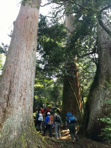 市房山は信仰の山でもあったため伐採せずに残った杉の大木が立ち並び、雰囲気のある山歩きです。